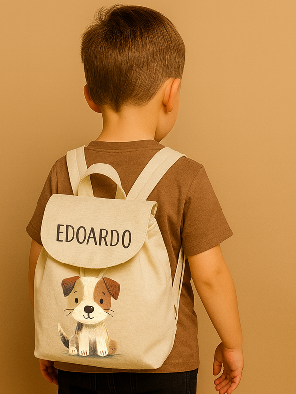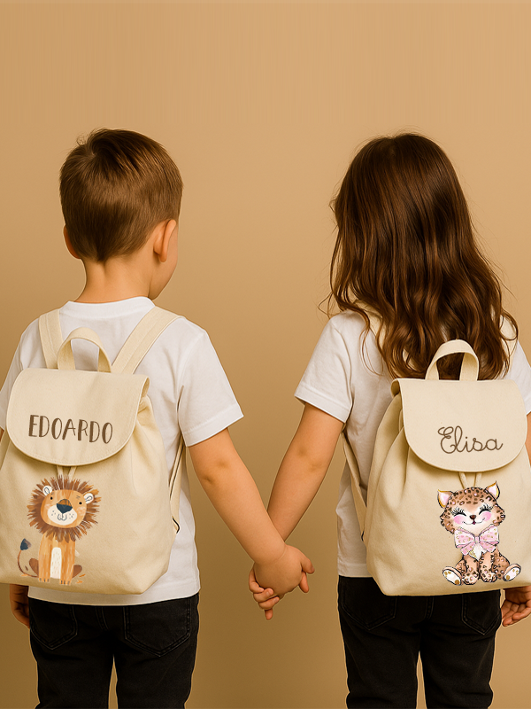 Zainetto in cotone canvas organico, PERSONALIZZABILE con NOME e ANIMALETTO.