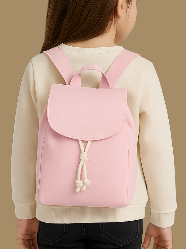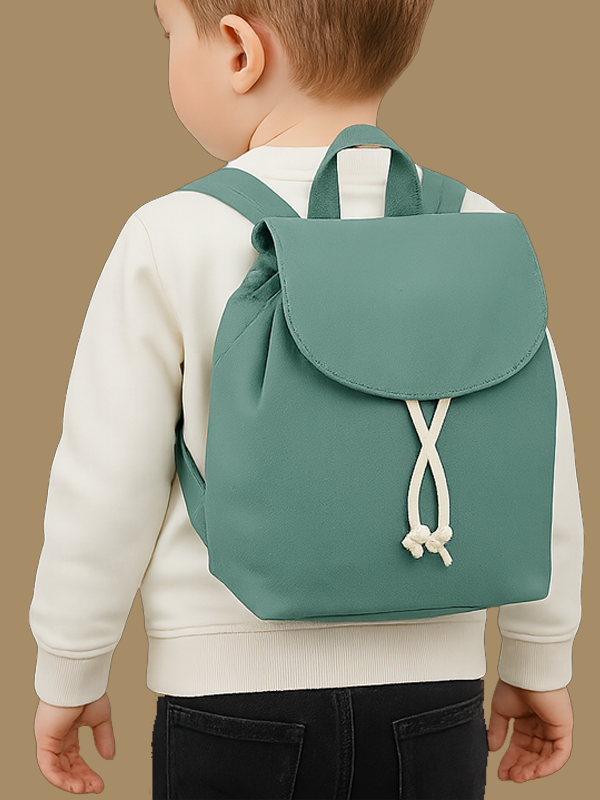 Patta ripiegabile con bottone a pressione, chiusura con cordino. Spallacci regolabili in tessuto.